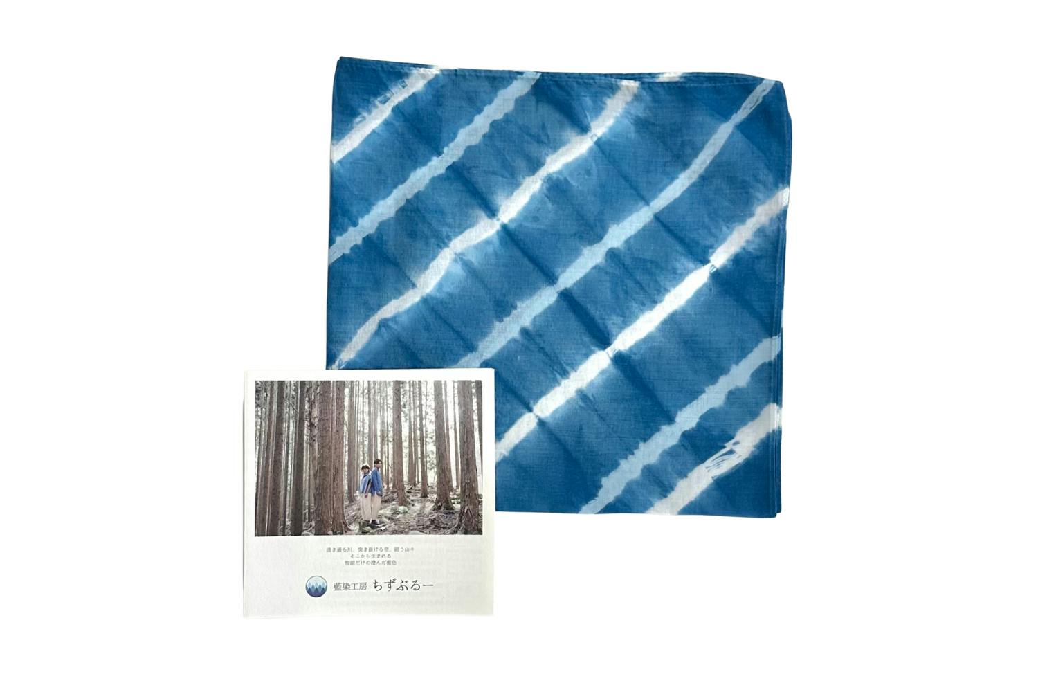 蓼藍(タデアイ)をタネから育て、葉のみを手作業で選別することで智頭だけの「澄んだ藍色」に染め上げ、智頭の美しい杉山や幸せな情景を作品にデザインし、” Made in Chizu “にこだわったものづくりをしています。