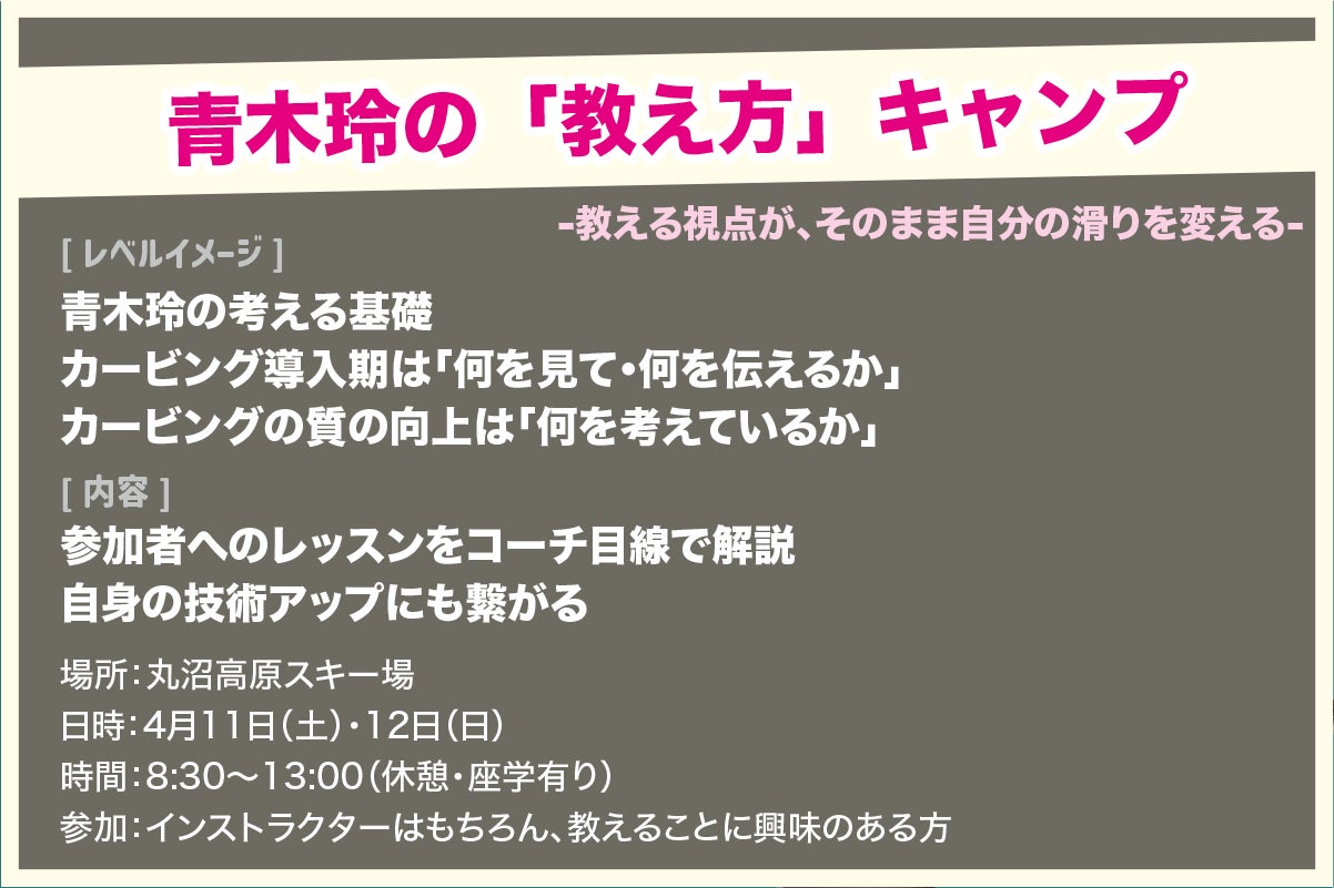 【青木玲の「教え方」キャンプ】青木玲の教え方を解説・伝授する「教えるためのレッスンキャンプ」の開催。初の試み!インストラクターはもちろん、教えることに興味のある方へ。