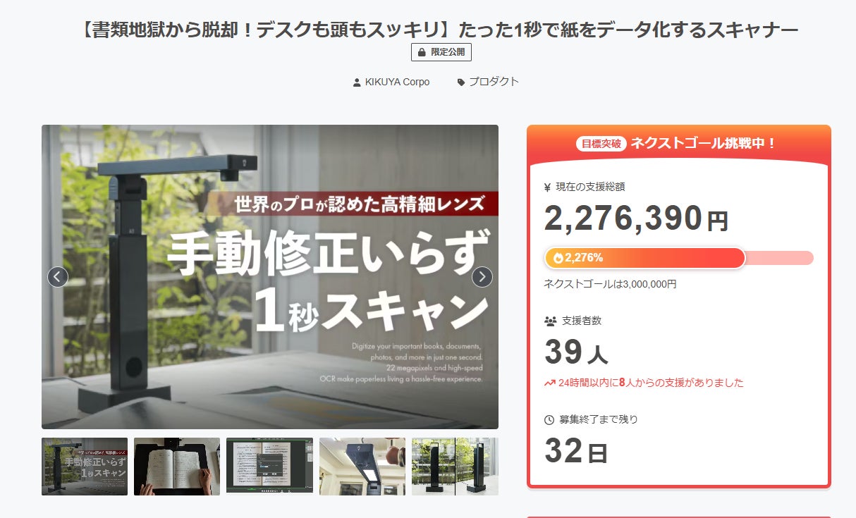 おかげさまで、ネクストゴールとして掲げておりました「200万円」を早期に達成することができました。多くの皆様にご共感いただけたこと、心より感謝申し上げます。