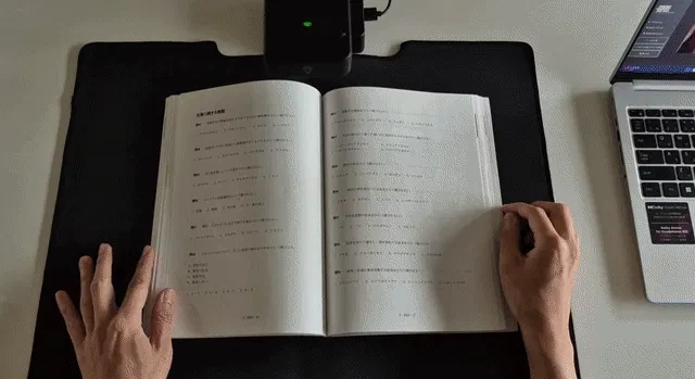 厚い本を開いたときにできる中央の谷やページ端の反り返りを瞬時に認識し、まるで1枚の平らな紙のように補正します。アクリル板で押さえつける必要も、大事な書籍を裁断する必要もありません。