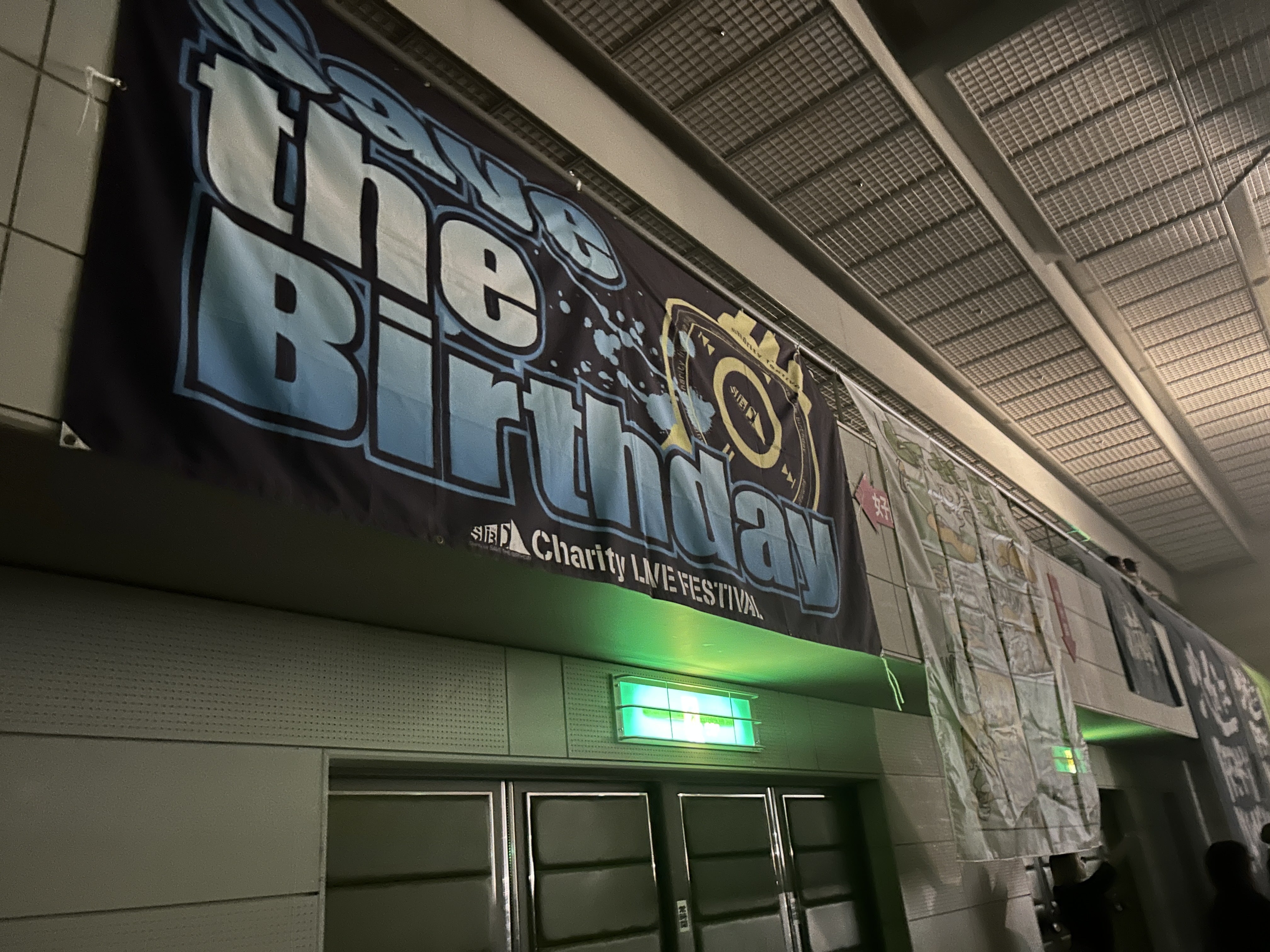 スカフリの粋な計らいで、なんと会場内にSave the Birthday のバックドロップ幕を掲示してくれました。感謝!!
