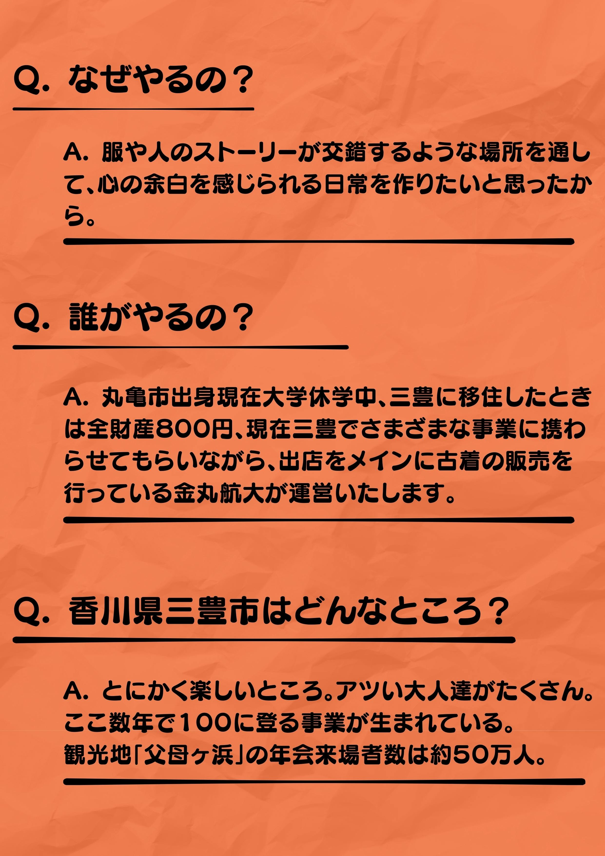 などを担うことで、古着そのものを楽しむことに限らず、古着を通して心の余白が生まれるような日常を作ってまいります。