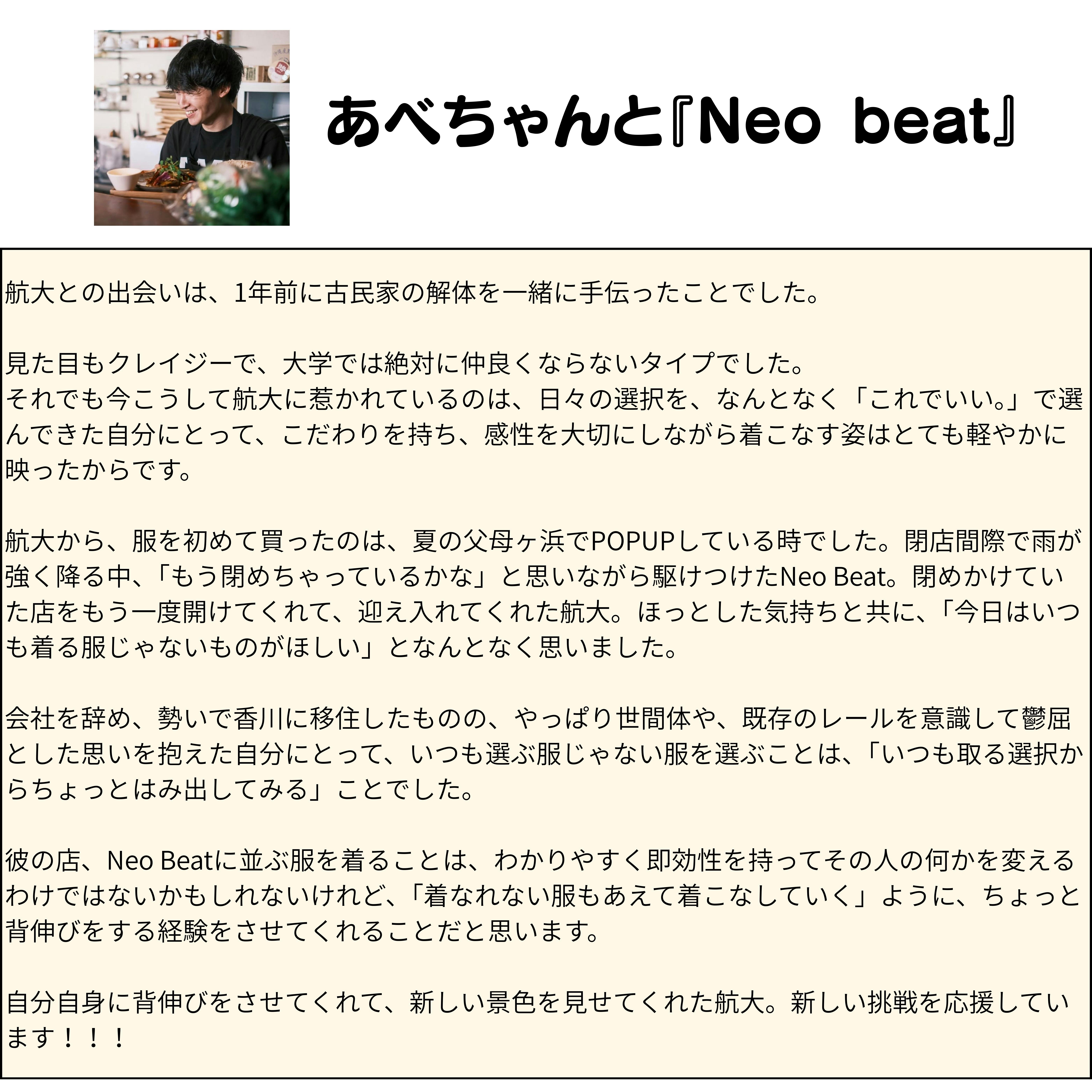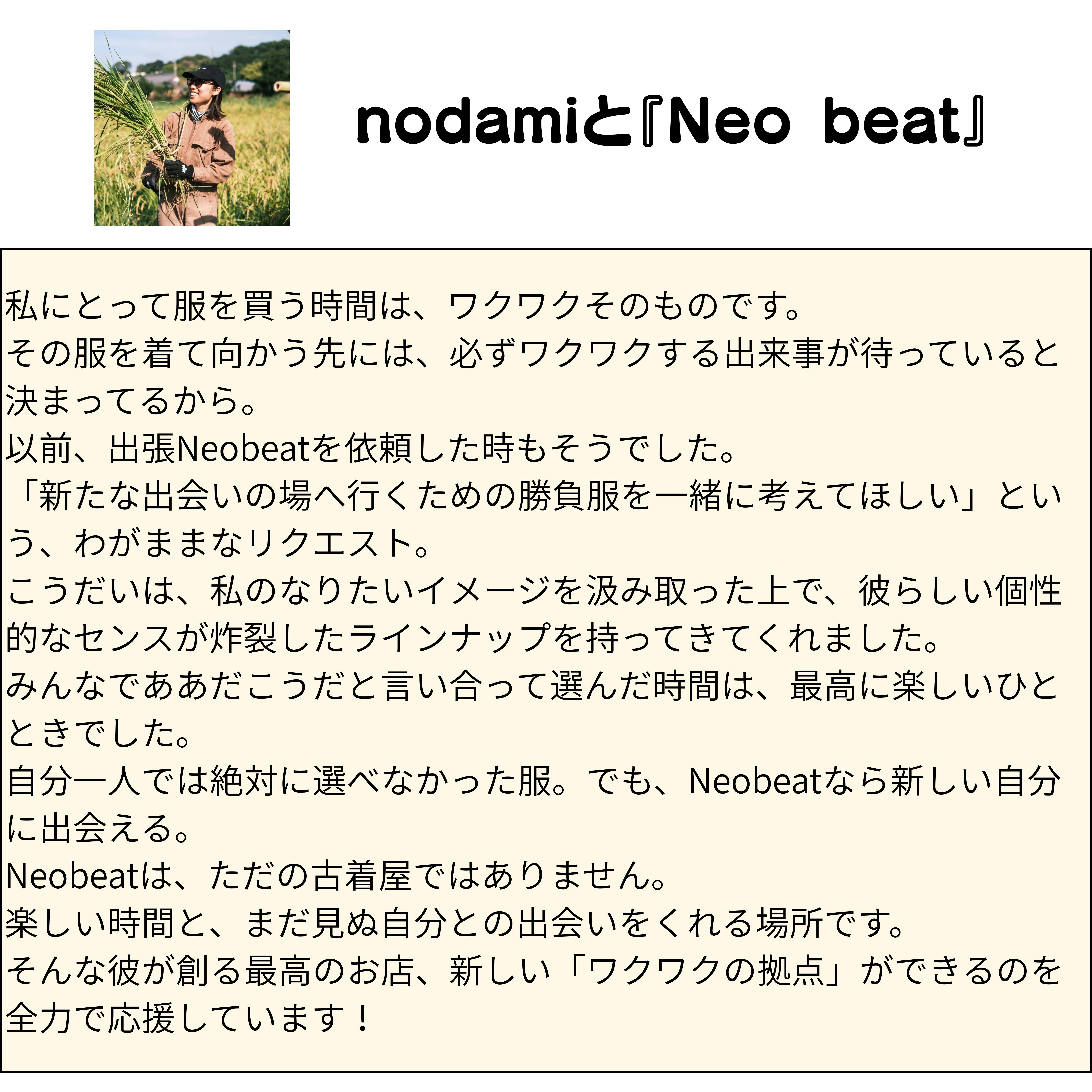 また『Neo beat』としてもこれがいいなと思ってもらえるような服や空間を備えた実店舗を作り上げます。