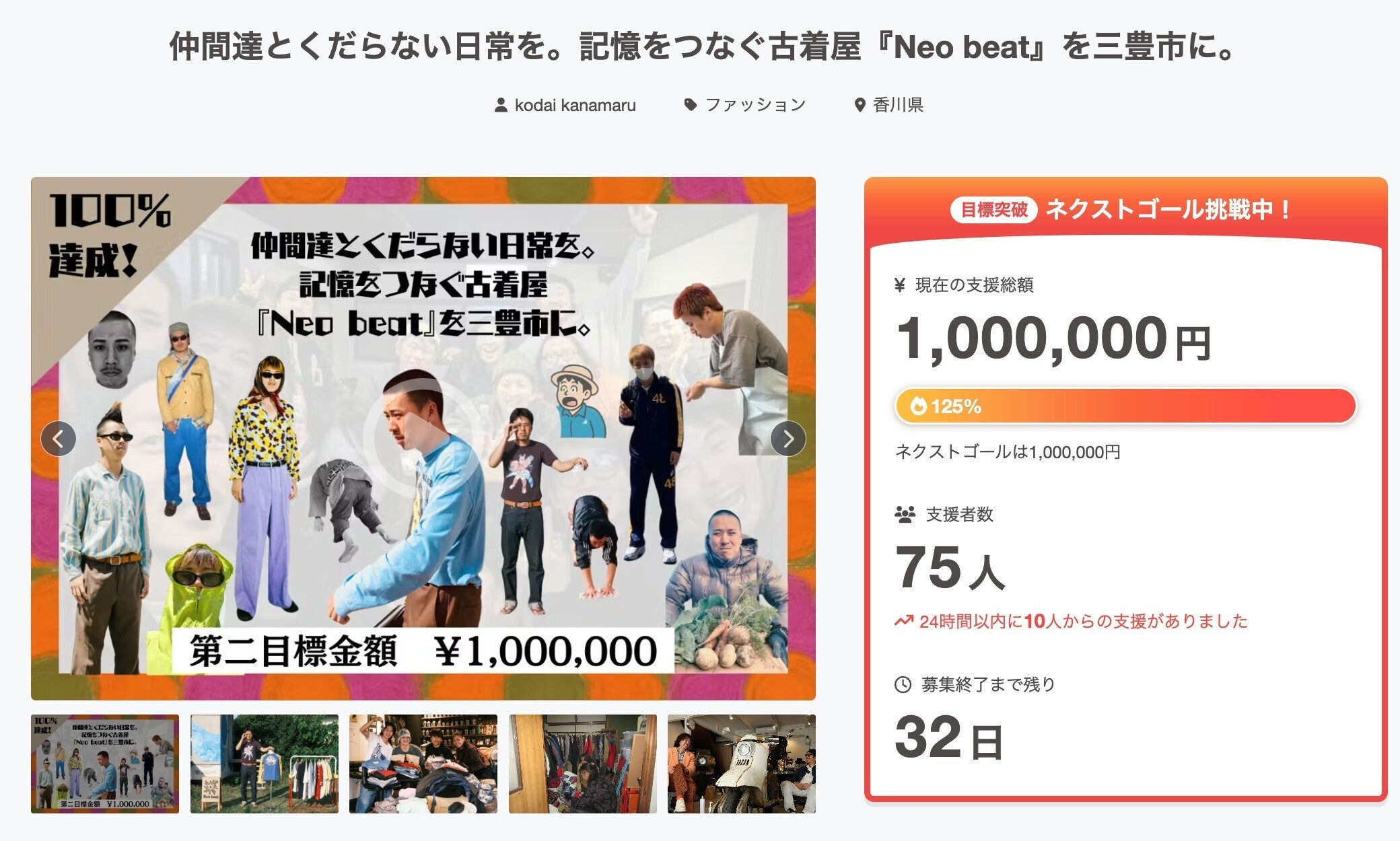 2026/03/05 14:40開始から4日目、第二目標金額100万円を達成できました!もうどうお礼すればよいか。。止まらぬ勢いに、皆様に感謝してもしきれません。本当にたくさんの方に応援いただいているというありがたすぎる事実を改めて胸に刻み、残りの期間、走り抜けます!次は第三目標!達成すると、海外のストーリーの詰まった古着を買い付けに行けます!皆様のもとへと届けたい! もっと見る