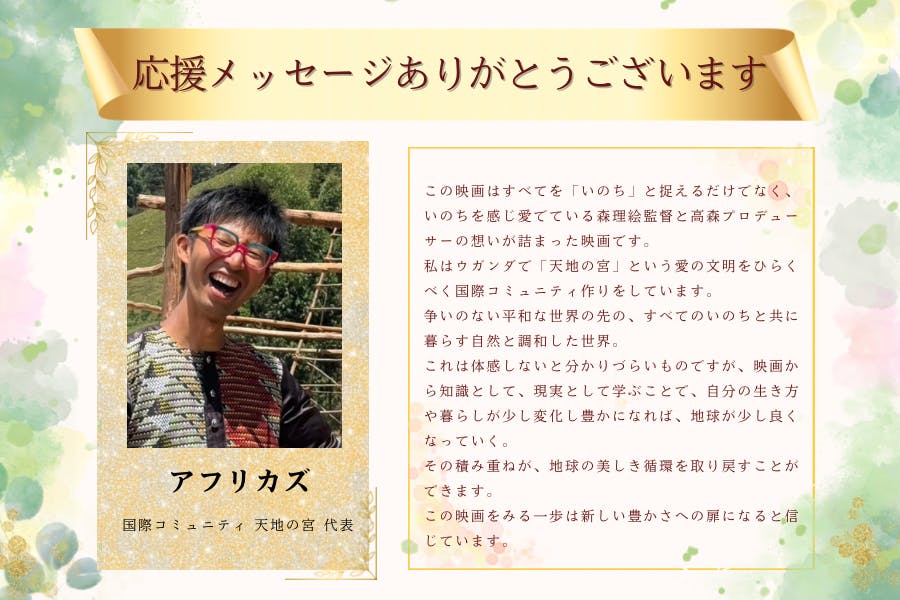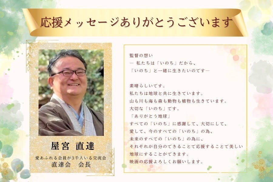 各分野の素晴らしい皆さんから、素敵な応援メッセージを頂きました!映画の向かう未来に心からの賛同と励ましの言葉をありがとうございます!
