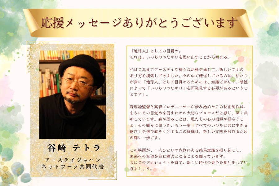 アースデイ東京ファウンダー 谷崎テトラさんから応援メッセージをいただきました!