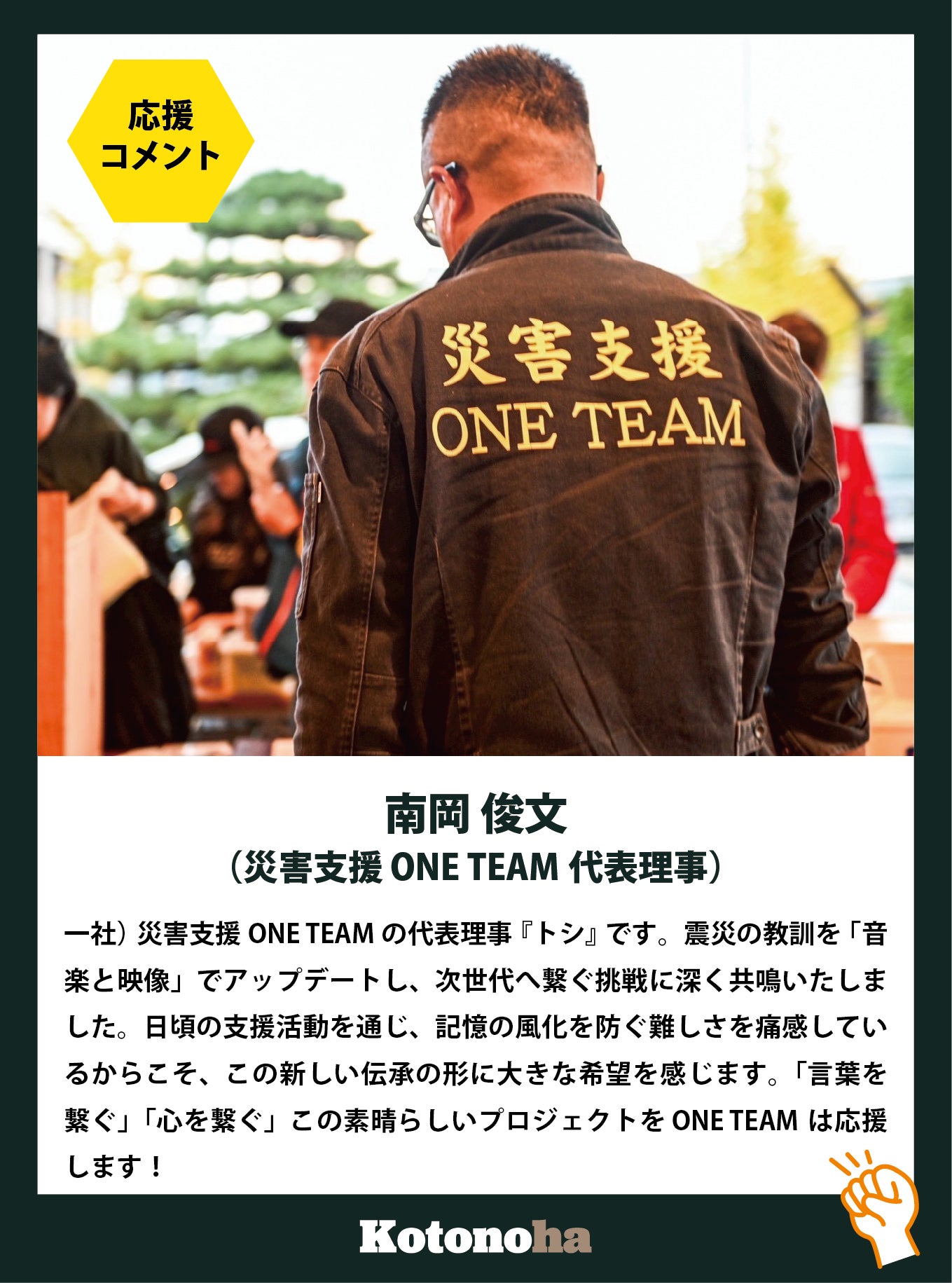 言の葉は、震災の記憶を文化として受け継ぐことにとどまりません。今後は、各地で発生する災害において、現地の“生の声”をリアルタイムに社会へ届けるメディアへと発展させていきたいと考えています。