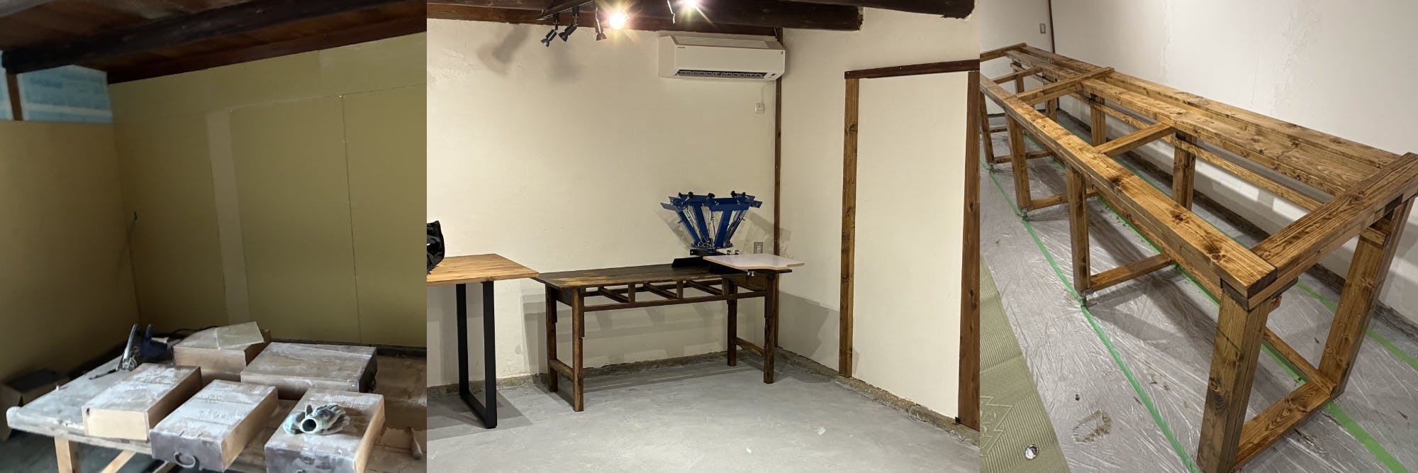 掃除開始から3ヶ月。古い梁(はり)はそのままに、シルクスクリーン制作に没頭できるスタジオへと生まれ変わりました!