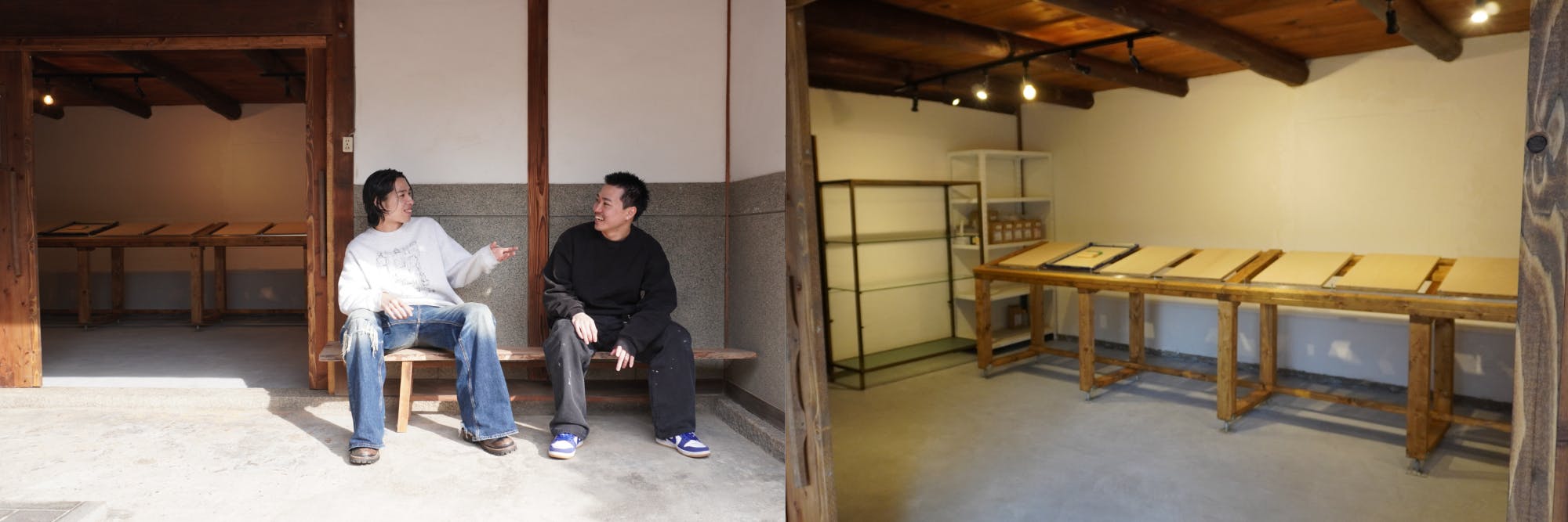 ボロボロの土壁に漆喰を塗り、床を整え、入口のドアや作業用のデスクまで一から製作し理想の空間を追求しました。