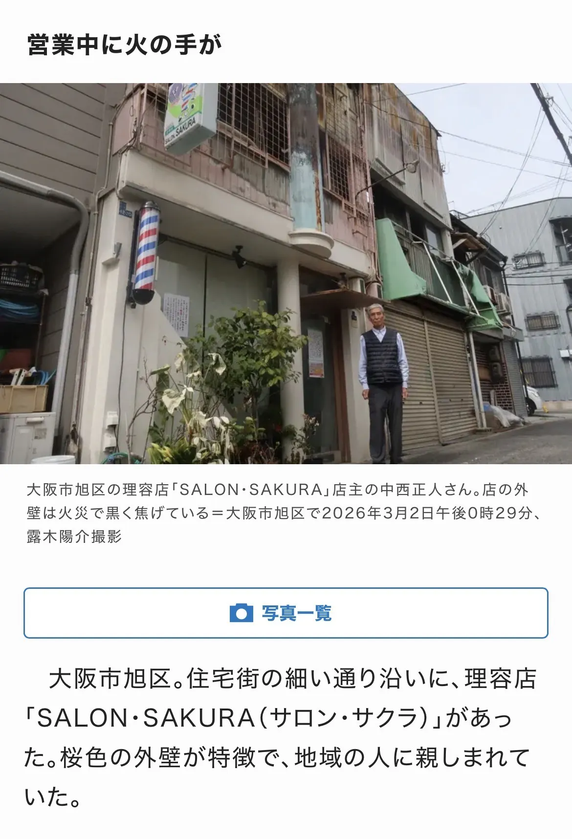 隣接する2軒の住居も、すべて私たちの自宅でした。理容店を含め、計3軒が全焼。