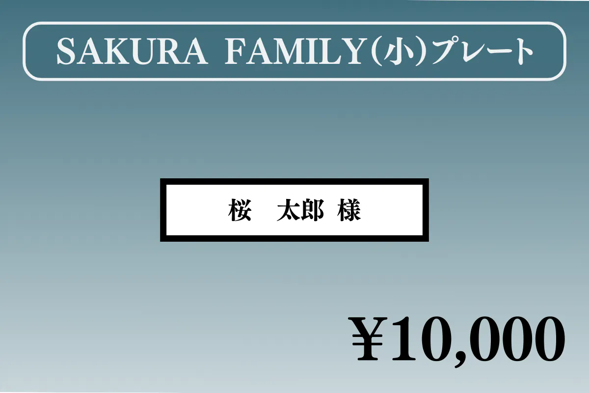 💈10,000円:お礼メッセージ/SAKURA FAMILY小プレート/支援者ネームプレート(店舗掲示)