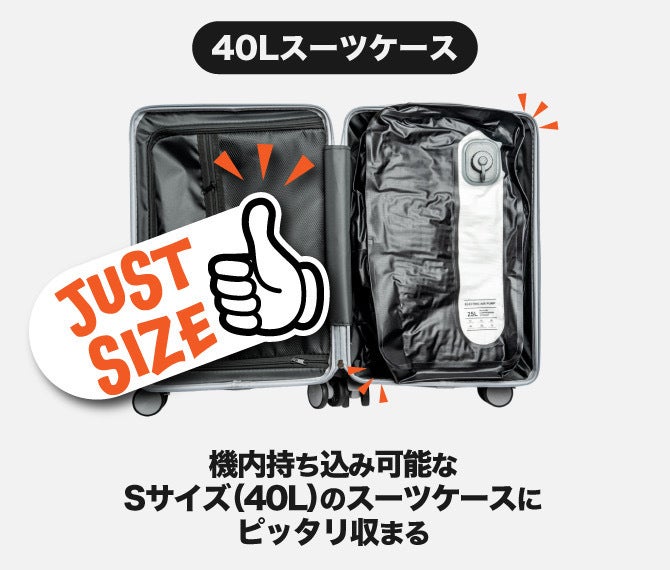 一般的なSサイズのスーツケースであればこの通りピッタリ!