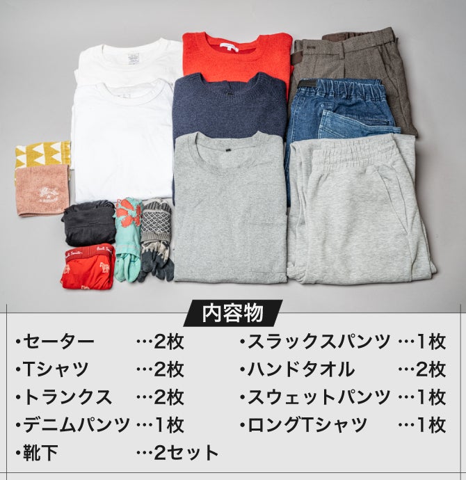 例えば、2泊3日の一人分の荷物を想定してみましょう。