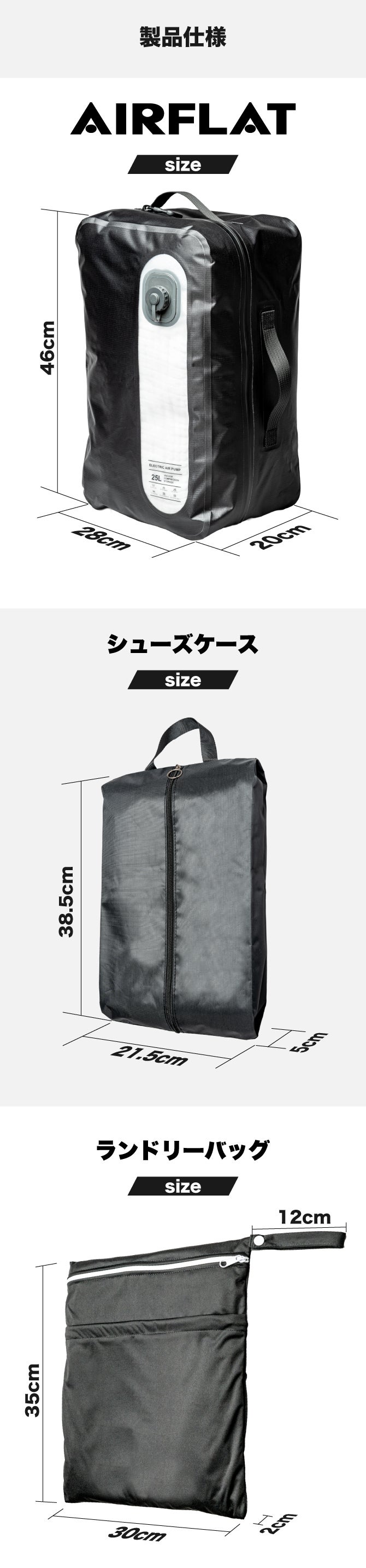 このランドリーバッグごとAIRFLATで圧縮すれば、コンパクトに持ち帰ることもできるので大変便利です。