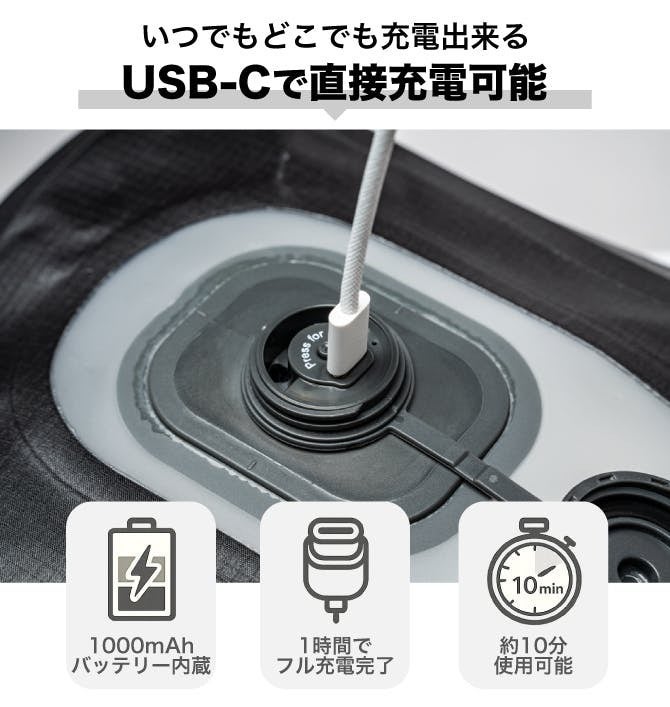 エアポンプ部分にUSB-Cの充電ポートがついており、直接充電をすることが可能です。