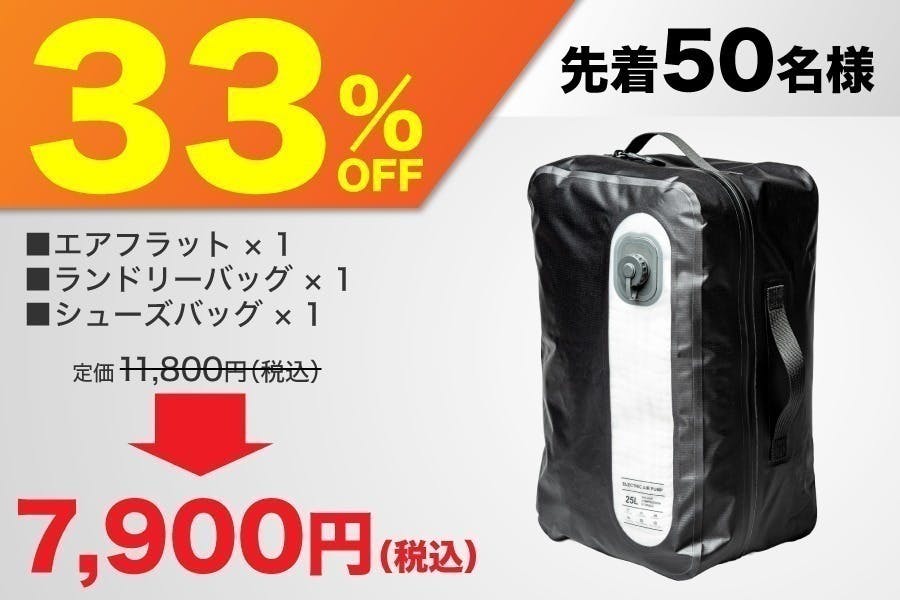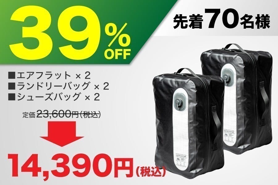 このランドリーバッグごとAIRFLATで圧縮すれば、コンパクトに持ち帰ることもできるので大変便利です。