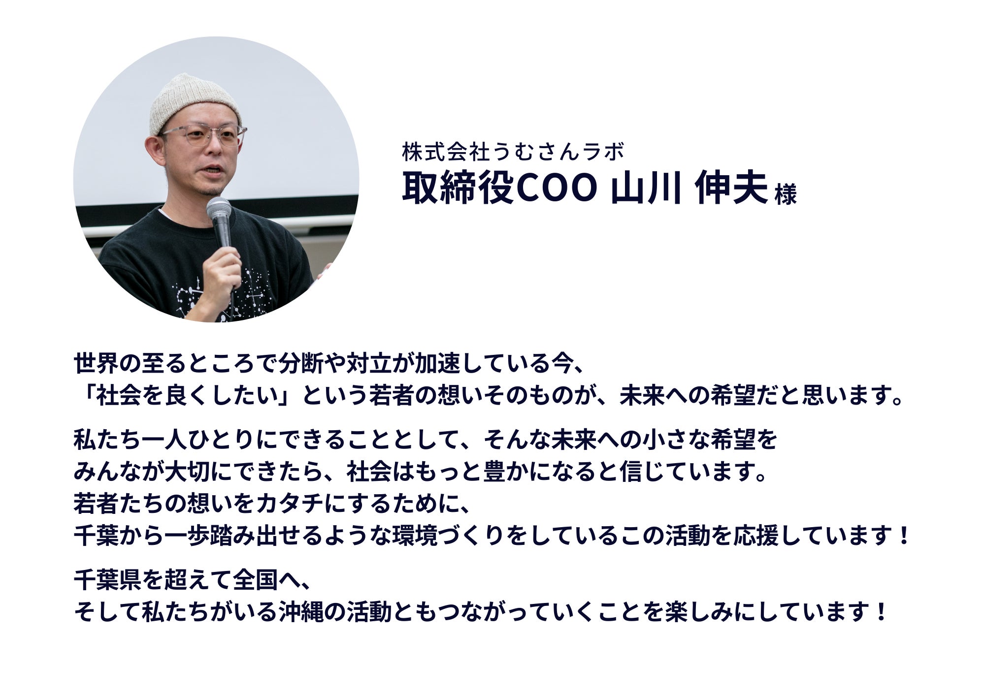 応援されるそんな社会を千葉から作り上げていくチャレンジだと思っています。