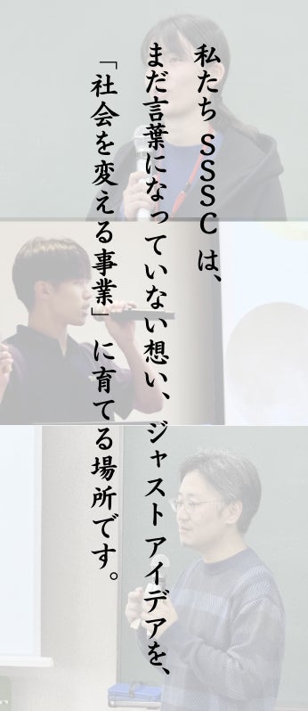 SSSCは、社会起業家を目指す学生のための無料の実践型育成プログラムです。