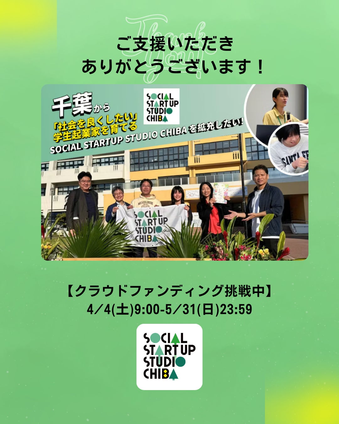 「千葉から社会を変える人材」を育てていくため、クラウドファンディングに挑戦します。
