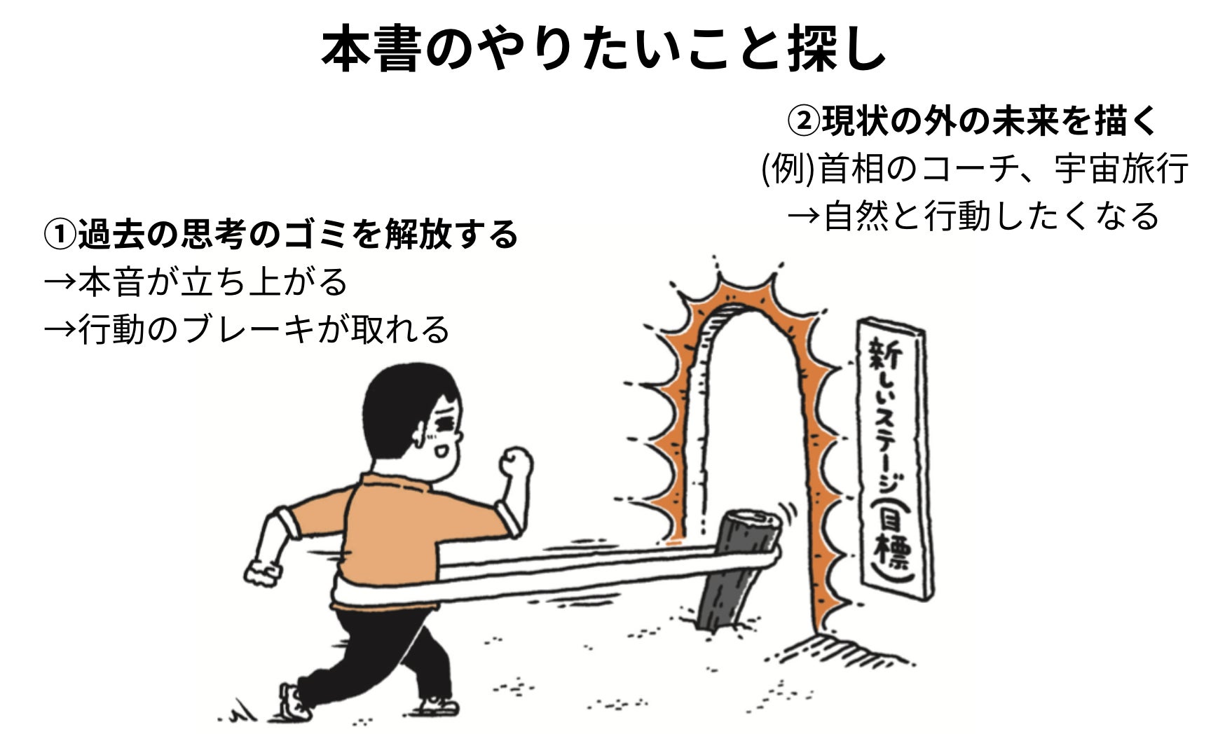 脳には現状を維持しようとする強力なブレーキがあるため、過去を掘り下げるだけでは「過去の延長線上の自分」に縛り付けられてしまうのです。