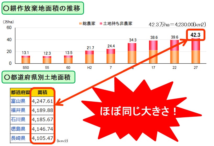 平成29年7月の資料を見ると日本全国の耕作放棄地はなんと42万ha!