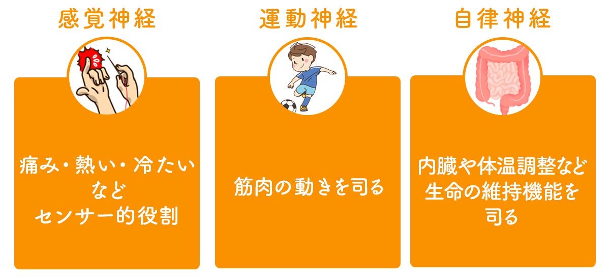・感覚神経:痛み、熱い、冷たいなどセンサー的役割