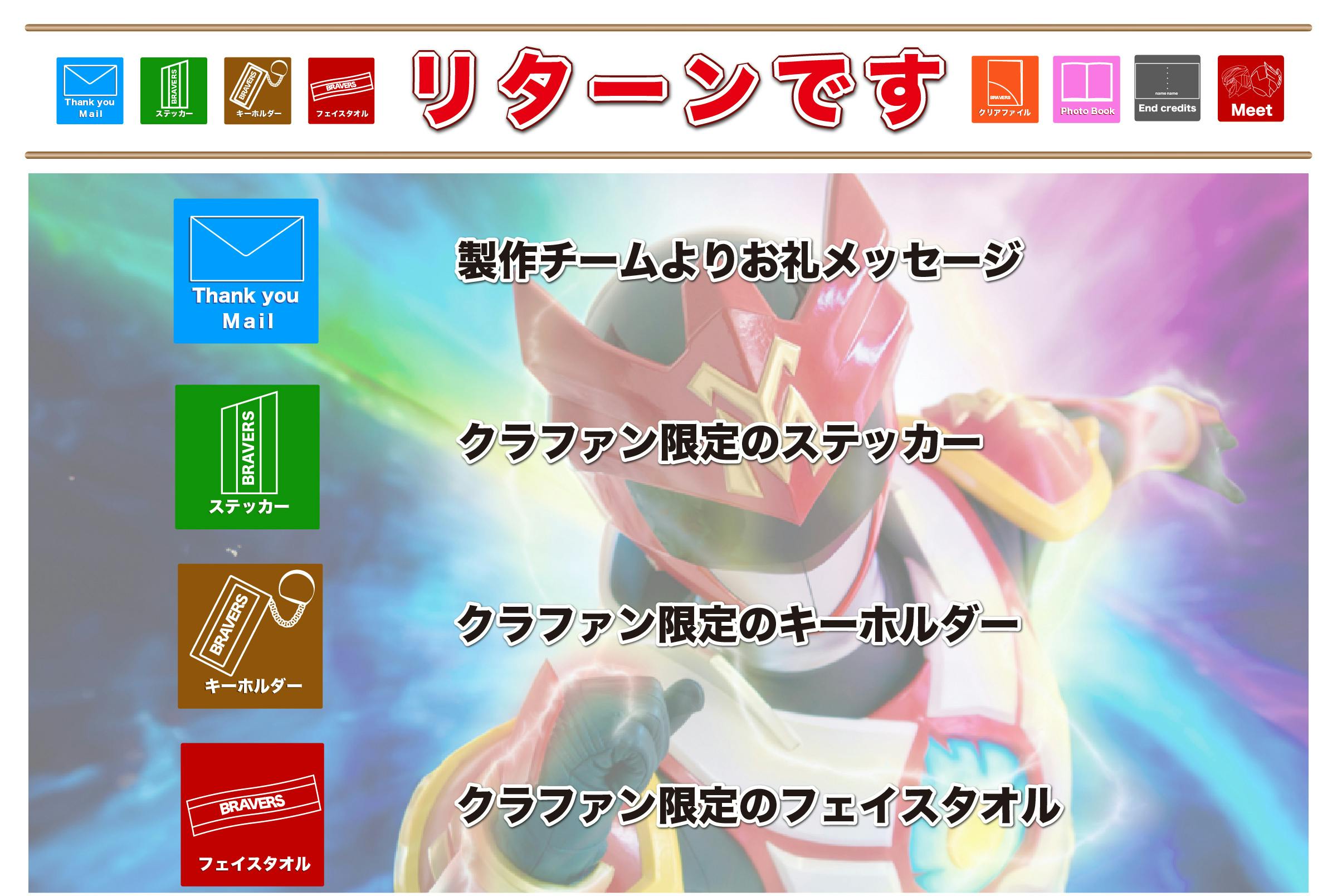 2026/02/10 10:33ブレイバーズプロジェクトを閲覧いただきありがとうございます。掲載しておりました一部画像に誤りがあったため、内容を訂正いたします。画像と下記内容が正しいものとなります。ご支援者の皆さまには混乱を招き、申し訳ありません。<訂正箇所・内容>✕<法人様向け>【CFシルバーパートナー】画像 「CFブロンズパートナー」と記載〇<法人様向け>【CFシルバーパートナー】画像 「CFシルバートナー」 もっと見る