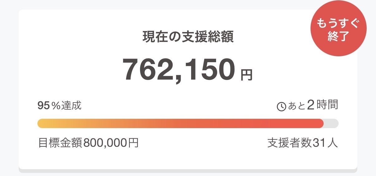 2026/04/16 21:32【クラファン終了まで残り2時間】95%を達成!!残り5万円を切りました!最後までご支援、ご拡散よろしくお願い致します! もっと見る