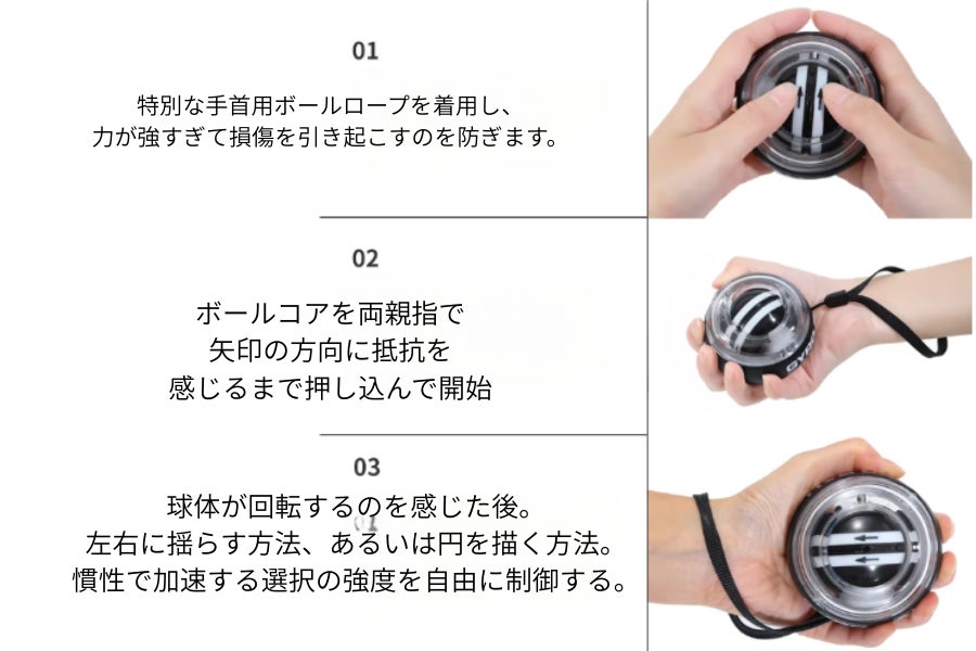 現代人の多くはスマホやPCの長時間利用により、手首や腕に疲労を抱えています。しかし、ダンベルを使った筋トレはハードルが高い。そこで注目したのが、遠心力を利用した「ジャイロボール」です。 元々はリハビリやスポーツ選手の強化に使われていたこの技術を、よりスタイリッシュに、そして手軽に(紐なしオートスタート)使えるよう改良された本製品を、ぜひ日本の皆様にも体験していただきたいと強く感じました。