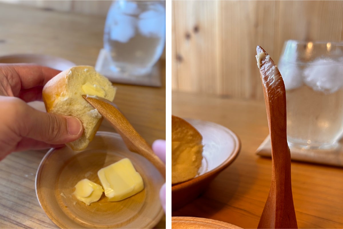 私は「あくまでも料理が主役」だという思いで制作しています。スプーンひとつでも、その形状は料理の内容や使用する方の年齢などによって異なります。使用感については、口に入れたときの触感から抜く瞬間までを想定し、テーブルに置いたときにグラつかない工夫も凝らしています。
