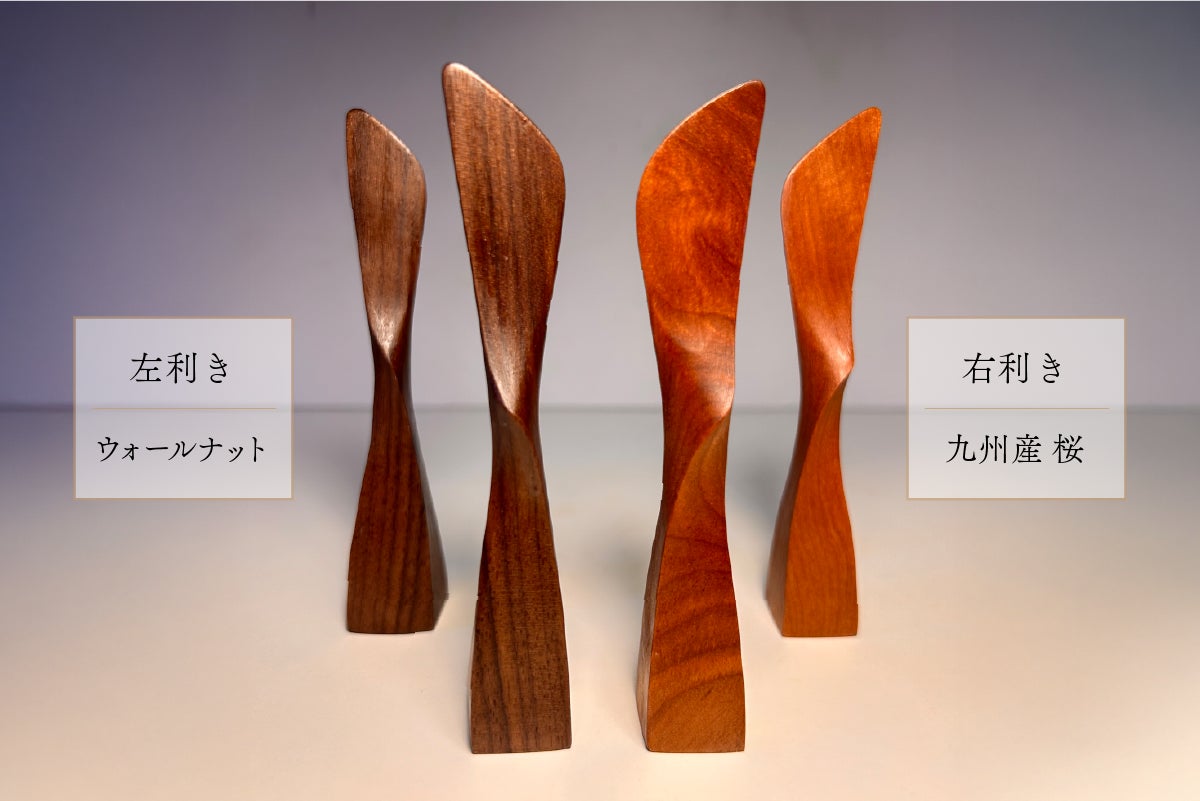 右利きは九州産の桜、左利きはウォールナットを使用しています。素材の色を活かすため、着色塗装は施していません。
