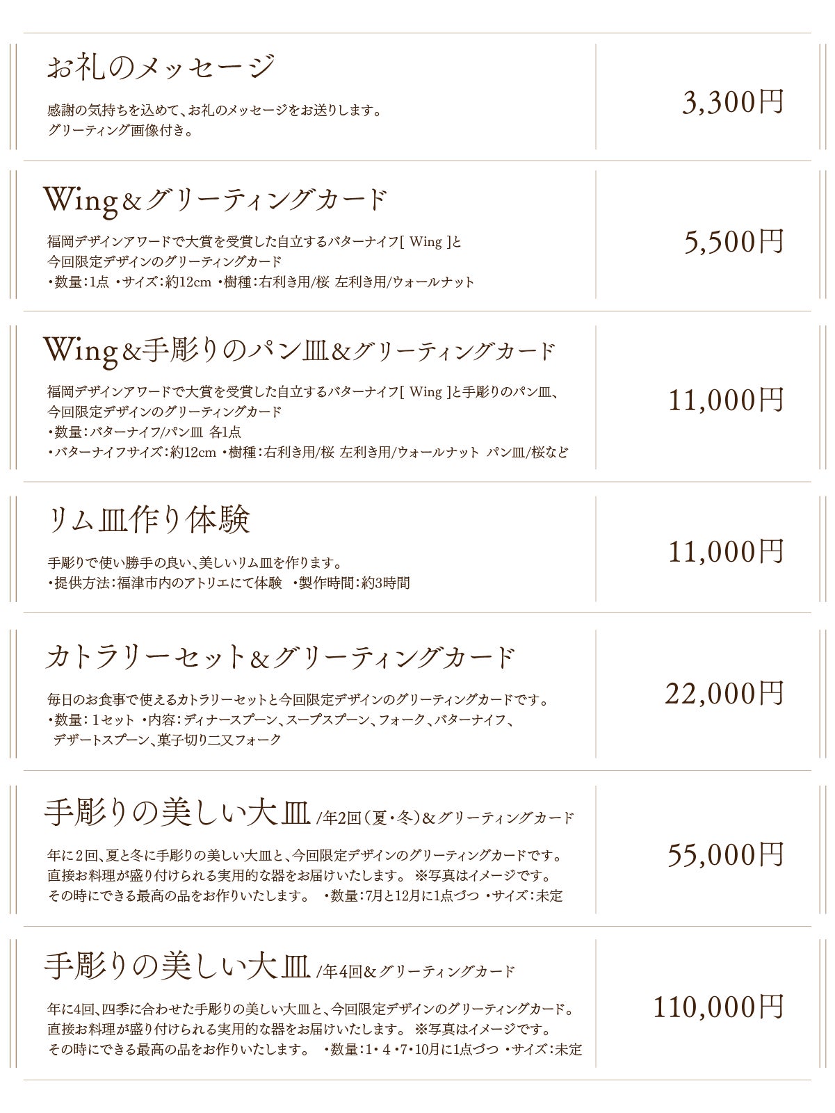 ※バターナイフは右利き用か左利き用を備考欄にご入力ください。