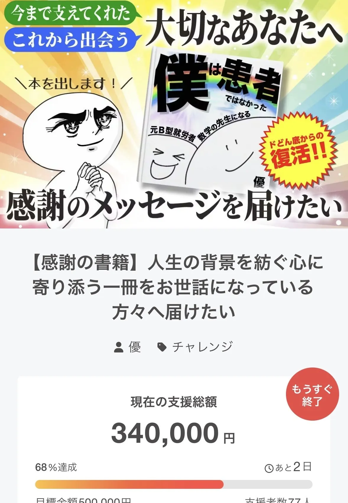 月曜日と火曜日で、クラファンが終わります!