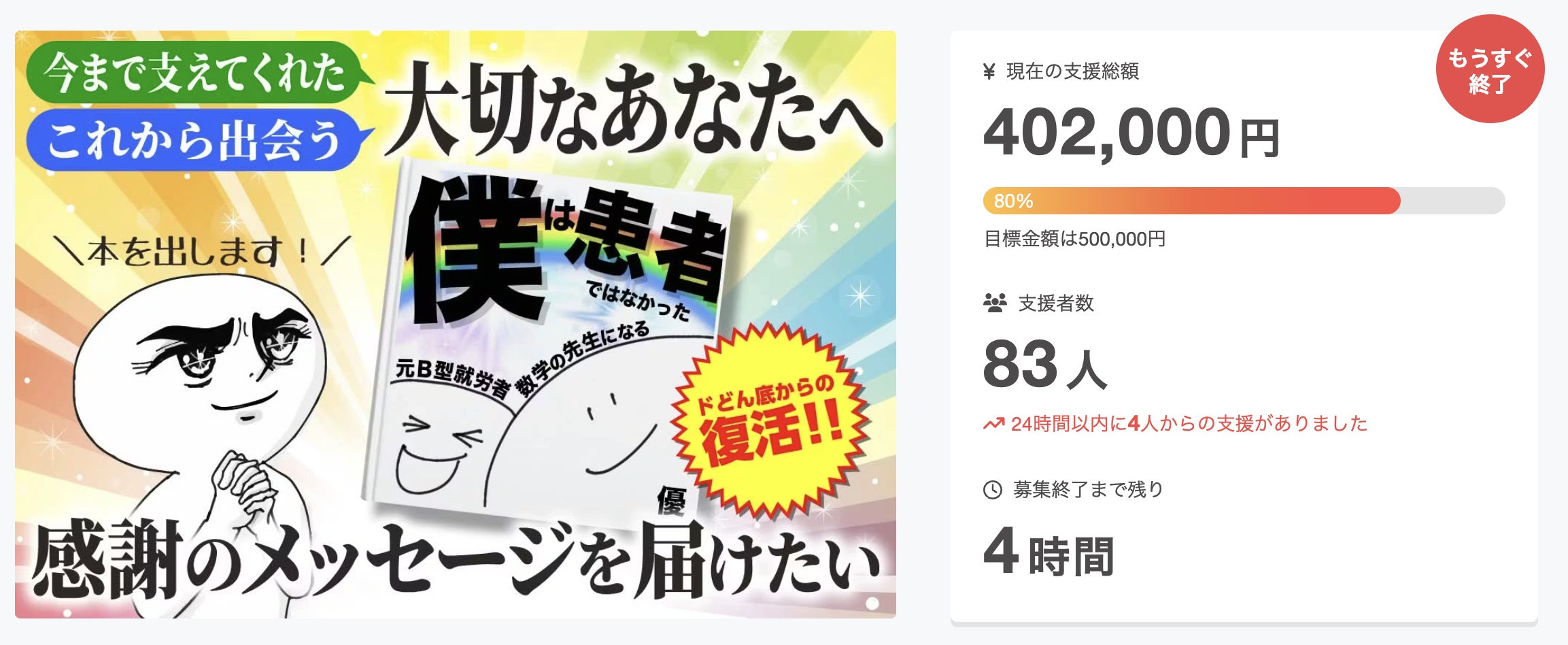僕はもう本当に幸せです。金額もさることながら、たくさんの人から応援のメッセージをいただいていることが本当にうれしいのです。