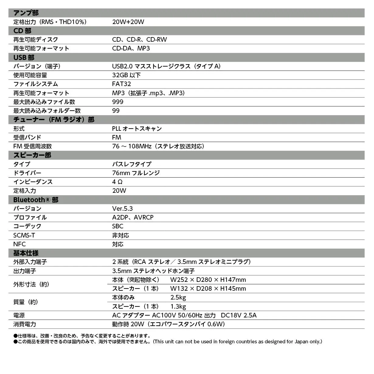 一般家庭で使いやすい出力の20 W +20W 総合40 Wアンプを搭載しています。