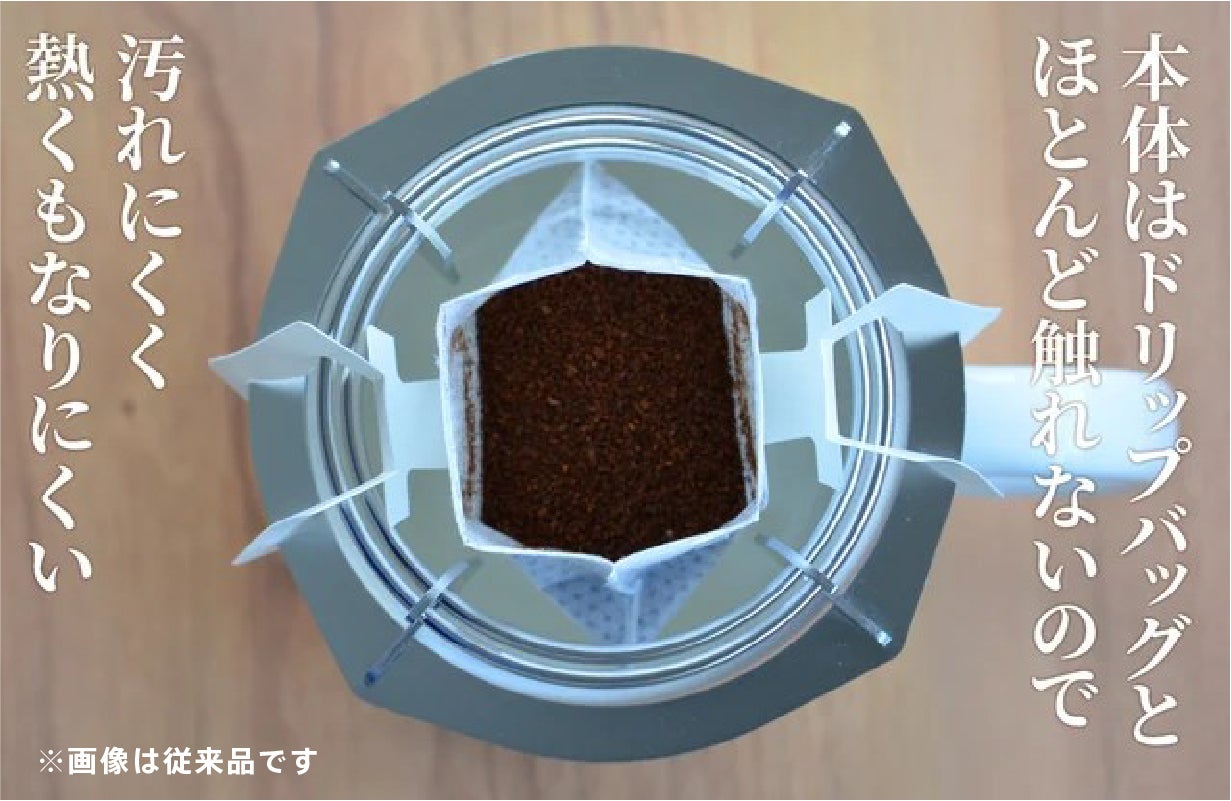 そこで生まれたのが「ドリップバッグキーパー」。カップに載せるだけで、ドリップバッグが浸らず、透過式のように淹れることができます。手軽さはそのままに、よりクリアで美味しいコーヒーを楽しめるアイテムです。