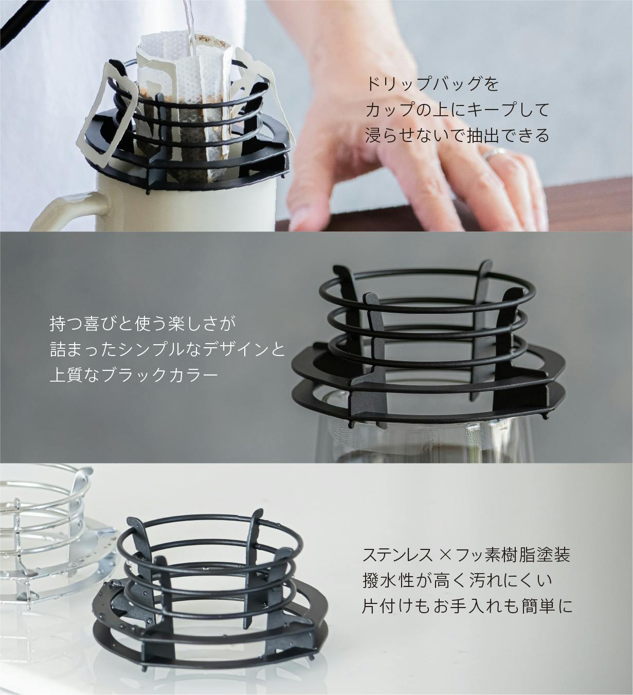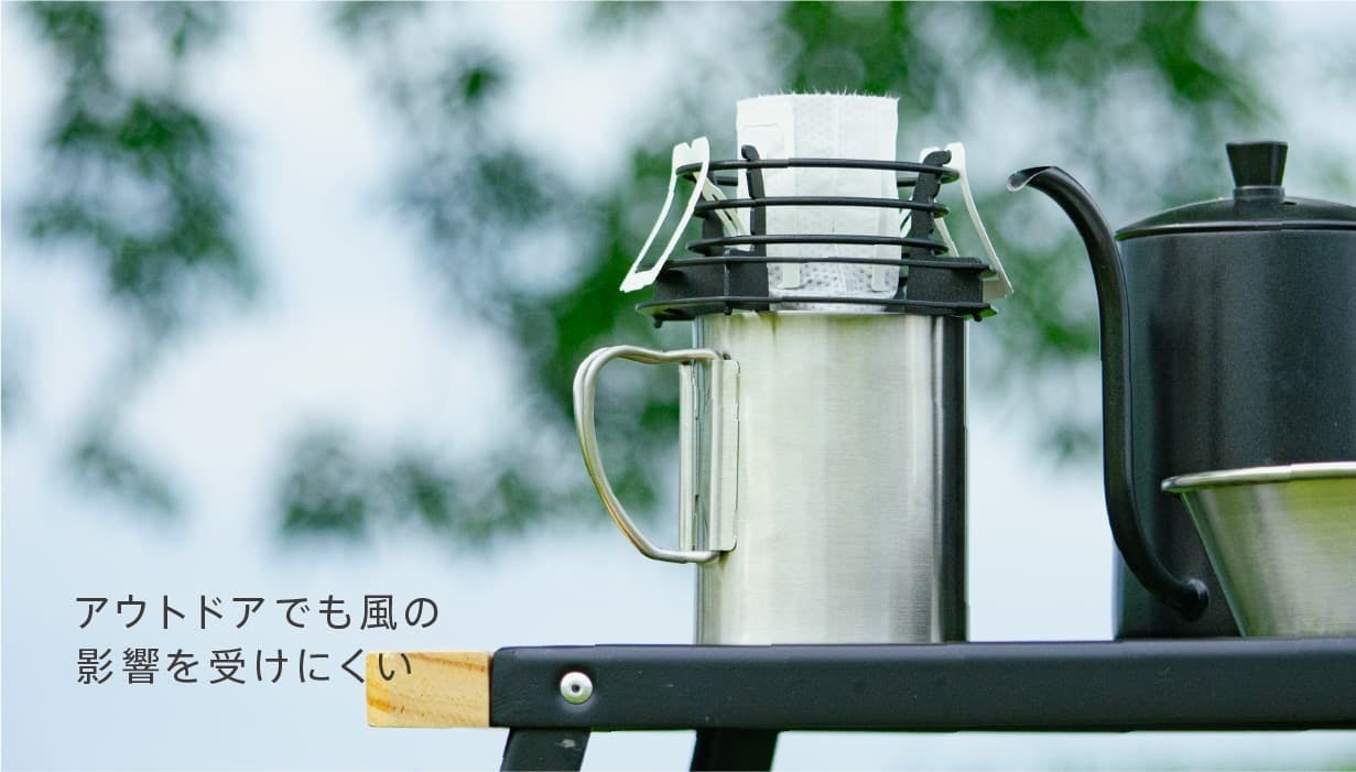 ドリップバッグをしっかりホールド。安定感も抜群