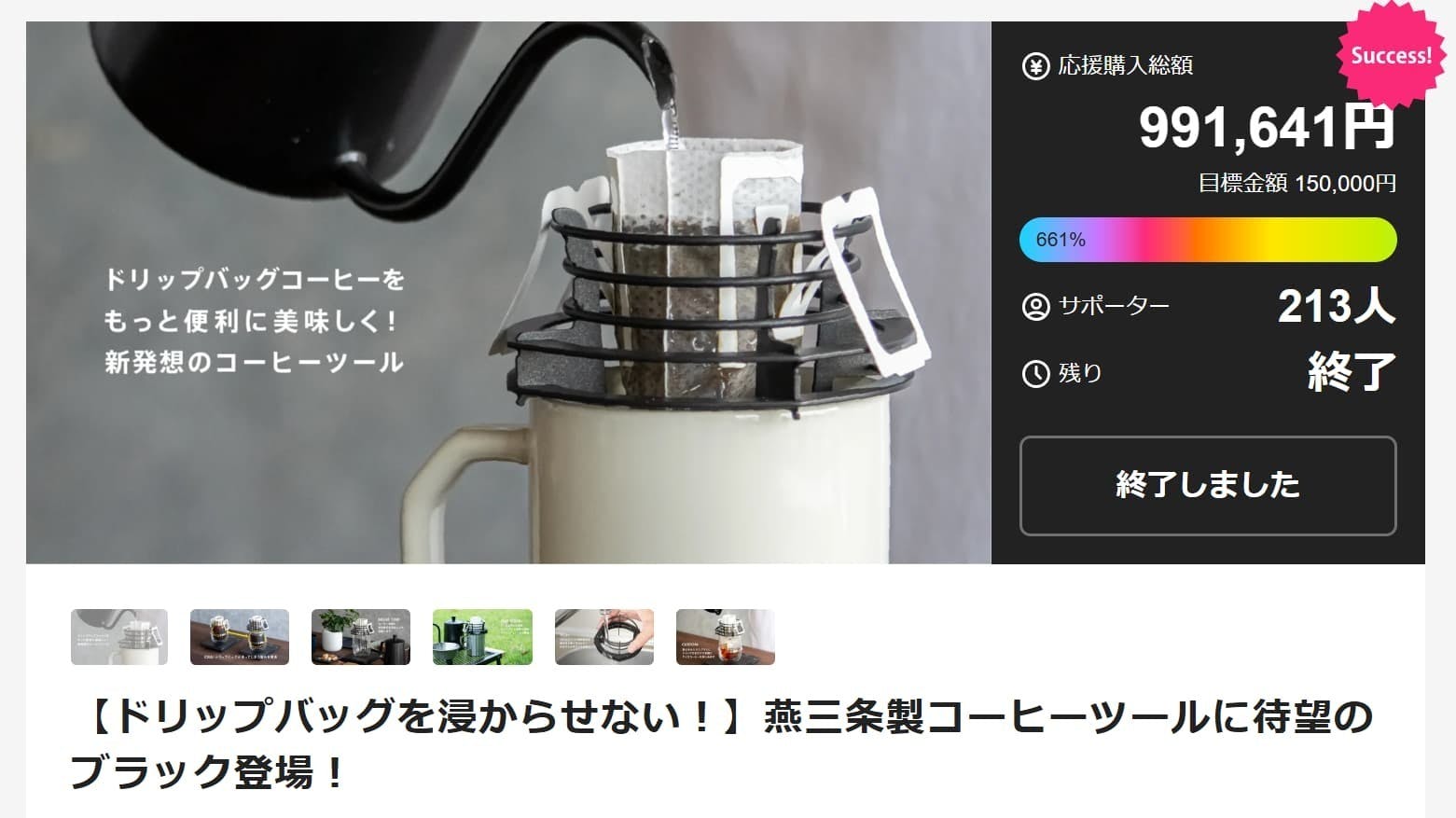 2026/03/09 15:03皆さま、いつも応援ありがとうございます。CAMPFIREで挑戦しているクラウドファンディングですが、いよいよ残り6日となりました。ここまでご支援いただいた皆さま、本当にありがとうございます。コメントや応援の言葉にも、とても励まされています。今回のプロジェクトは、すでに販売している商品ではありますが、「より多くの方に知っていただきたい」という思いで挑戦しています。もし周りにコーヒー好きの方がいらっしゃいましたら、ぜひこのプロジェクトをシェアしていただけると嬉しいです。最後まで頑張りますので、引き続きよろしくお願いいたします! もっと見る