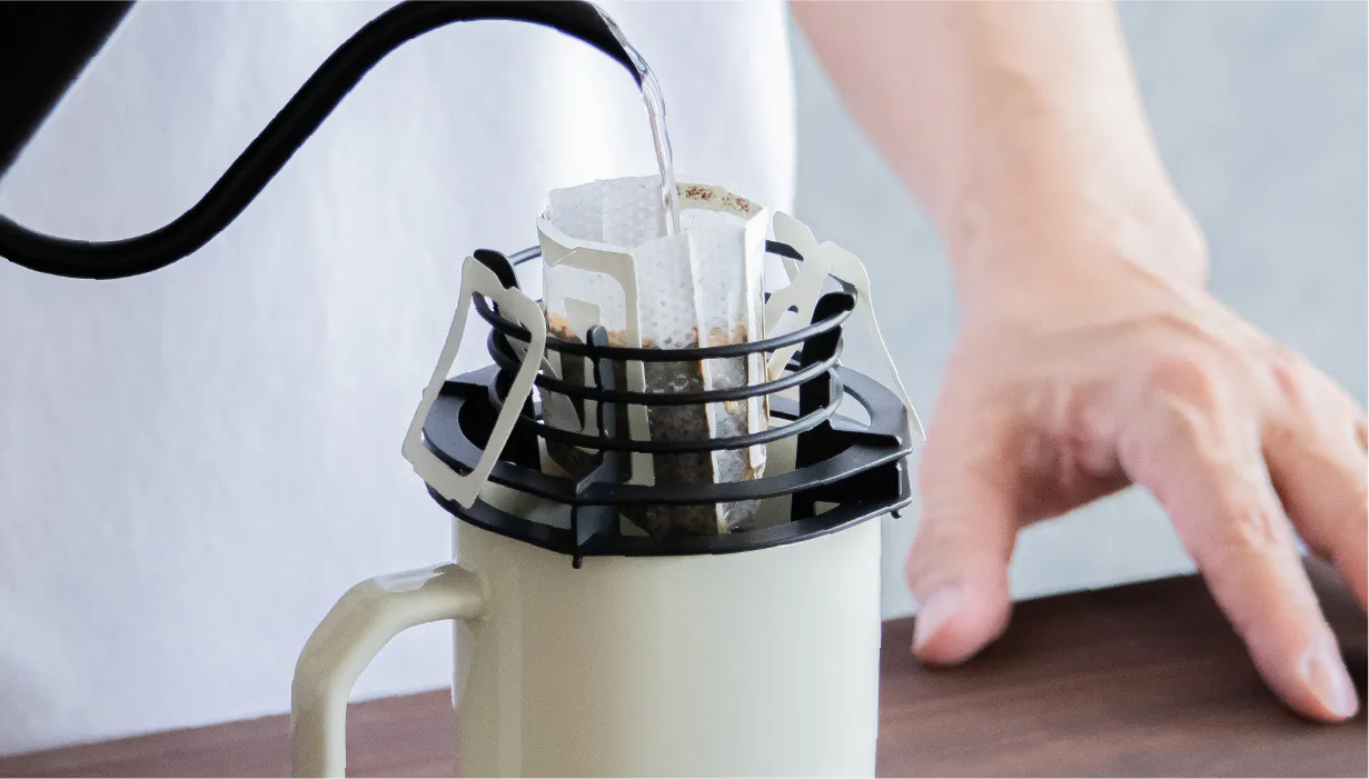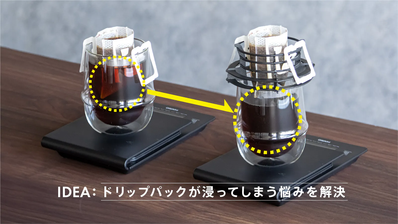 そこで生まれたのが「ドリップバッグキーパー」。カップに載せるだけで、ドリップバッグが浸らず、透過式のように淹れることができます。手軽さはそのままに、よりクリアで美味しいコーヒーを楽しめるアイテムです。