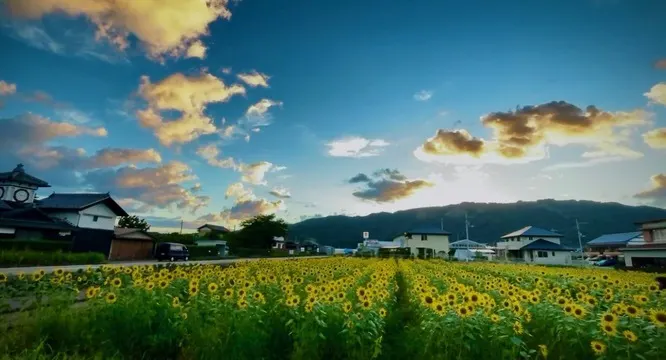 夏は宿から直ぐのところに野良時計とひまわり畑