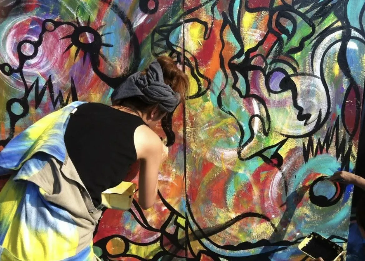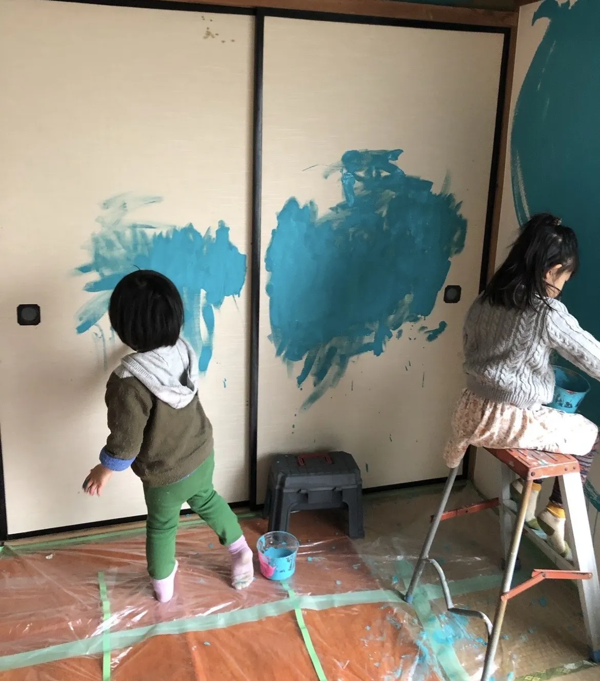 ライブペイントをしていた頃の私。松竹梅と言う3人のユニットでの活動の後、ujamaaと言う2人組でのパフォーマンスを。