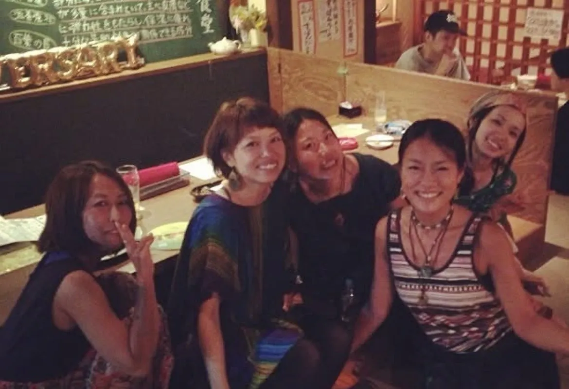 当時、仲良かったペインターの仲間や友人たち。飲みに出ては語らう日々。よく通っていたすっぽん料理の店ツバクロにて。