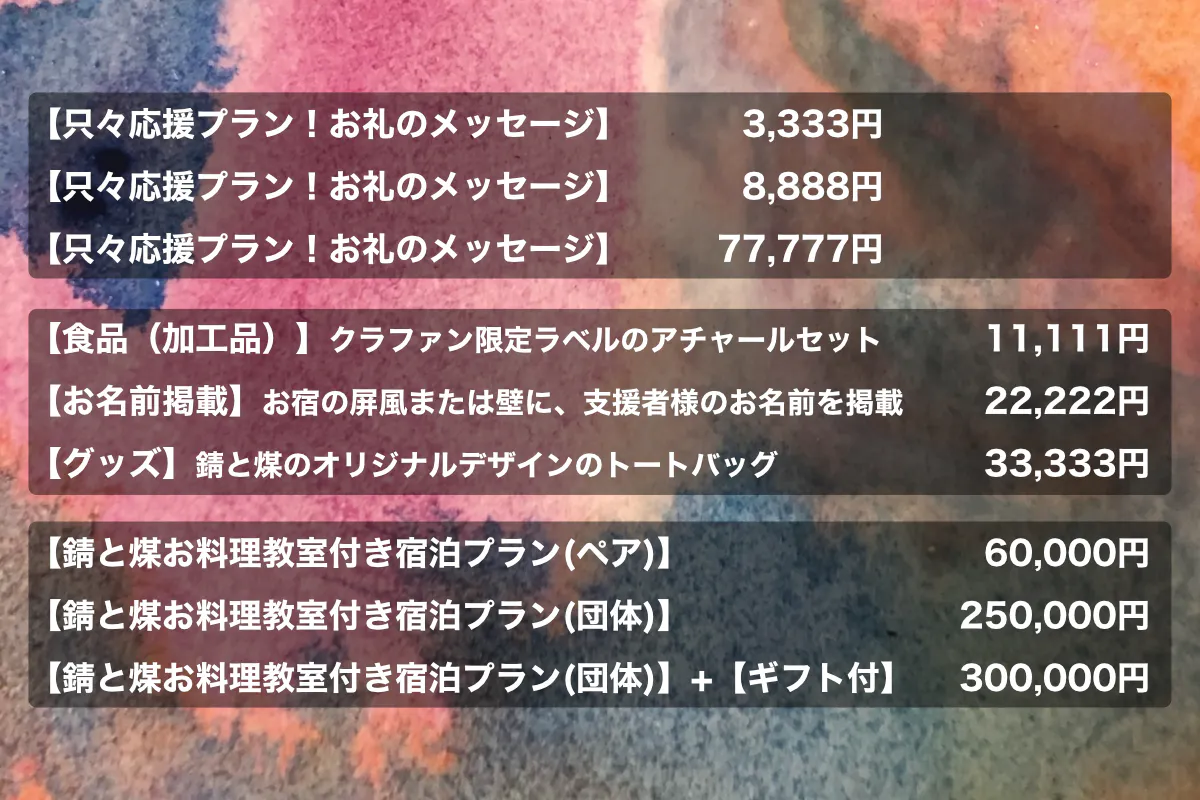 ※目標金額を超えた場合はプロジェクトの運営費に充てさせていただきます。