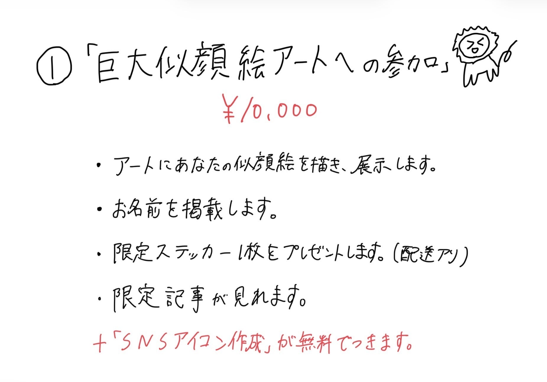 【個展の主役「巨大似顔絵アートへの参加」(10,000円)】