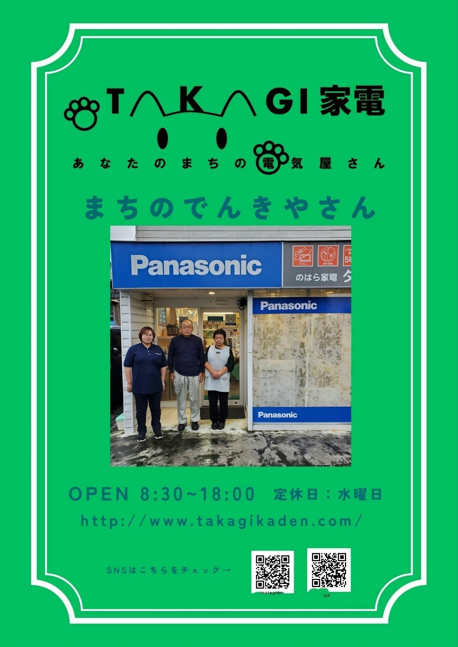 地域の皆さまが『何か困ったときはタカギ家電に相談すれば大丈夫』と思っていただけるお店です。パナソニックだけでなく他メーカーの家電も扱えるようにして、お客様の選択肢を広げたいと思います。