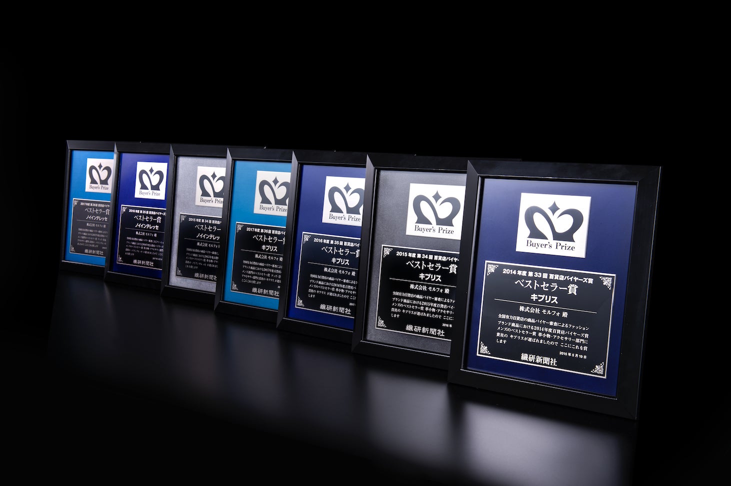 さらに、1982年にスタートした繊研新聞社主催の全国有力百貨店バイヤー・販売担当者が選ぶファッションブランドを表彰する「百貨店バイヤーズ賞」を、2003年から2019年度までの17年連続で受賞しています。