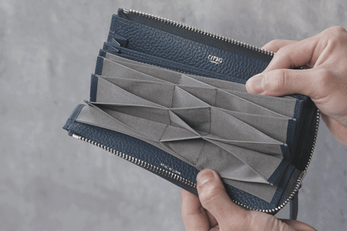 前回の「1ssi」, 「matowa」に続き、「CYPRIS」を手掛ける株式会社モルフォとタッグを組み、新製品開発を行いました。長い期間を掛けて生み出され、キプリスオンラインの販売も好評な「LFコンパクトハニーセル®長財布|1ssi」を基に、スリムにまとめつつ使いやすい「1ssi slim」を開発しました。CYPRISの高い製法技術とデザイン哲学をベースに、細部の美しさにまでこだわりぬいてつくられています