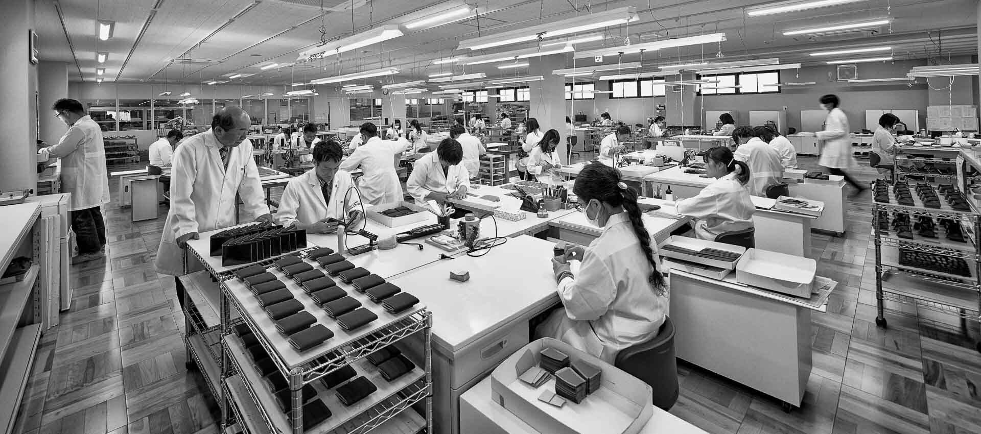 「CYPRIS」の財布は、より高い技術を追い求め研鑽を重ねた11人の1級職人が在籍する工房で作られています。11人というと少なく聞こえますが、そもそも同試験の1級所持者は日本全体でも40人。(2024年時点)