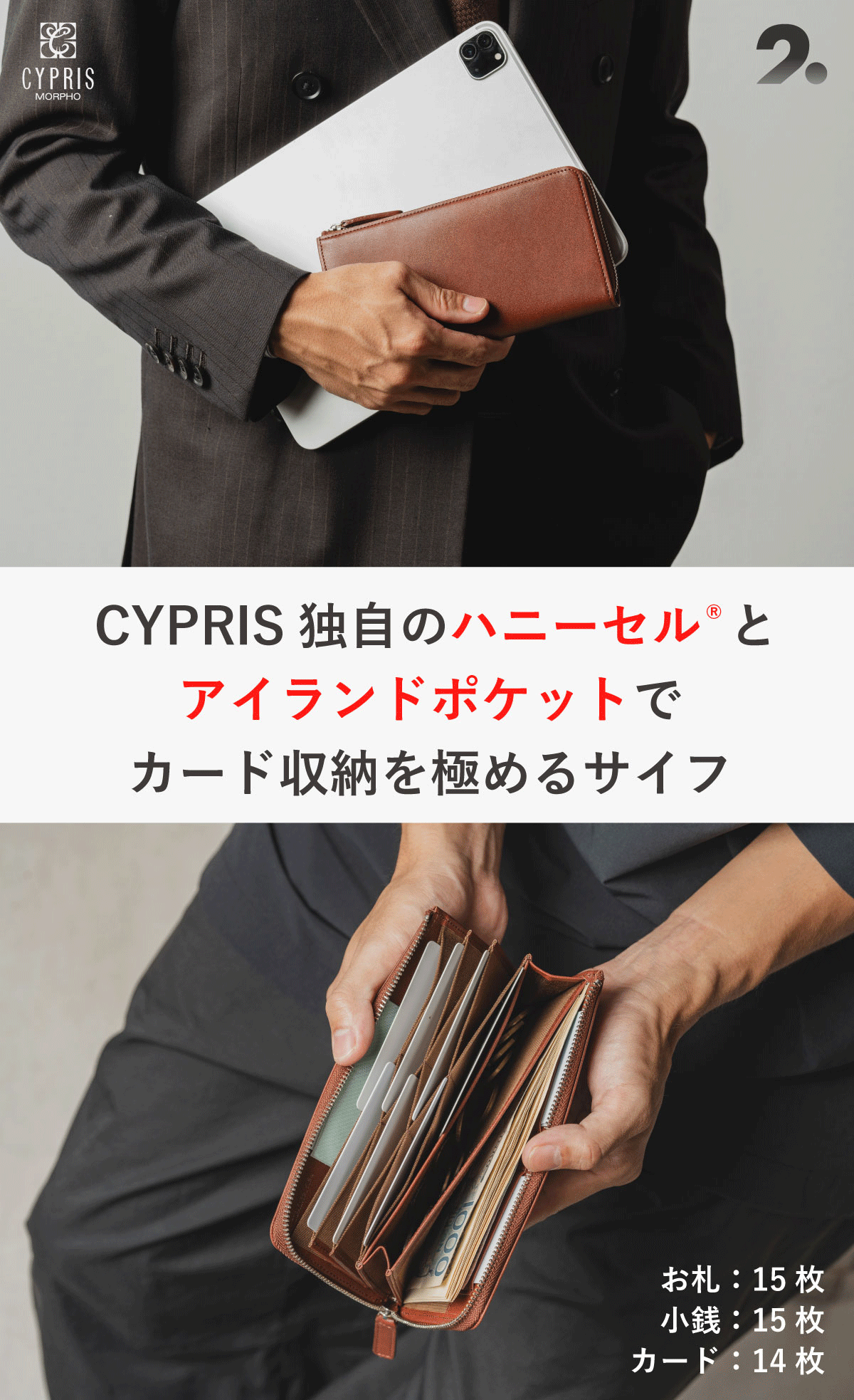 1)「CYPRIS」独自のハニーセル®ポケットでは利用頻度の高いエッセンシャルなカードを収納。