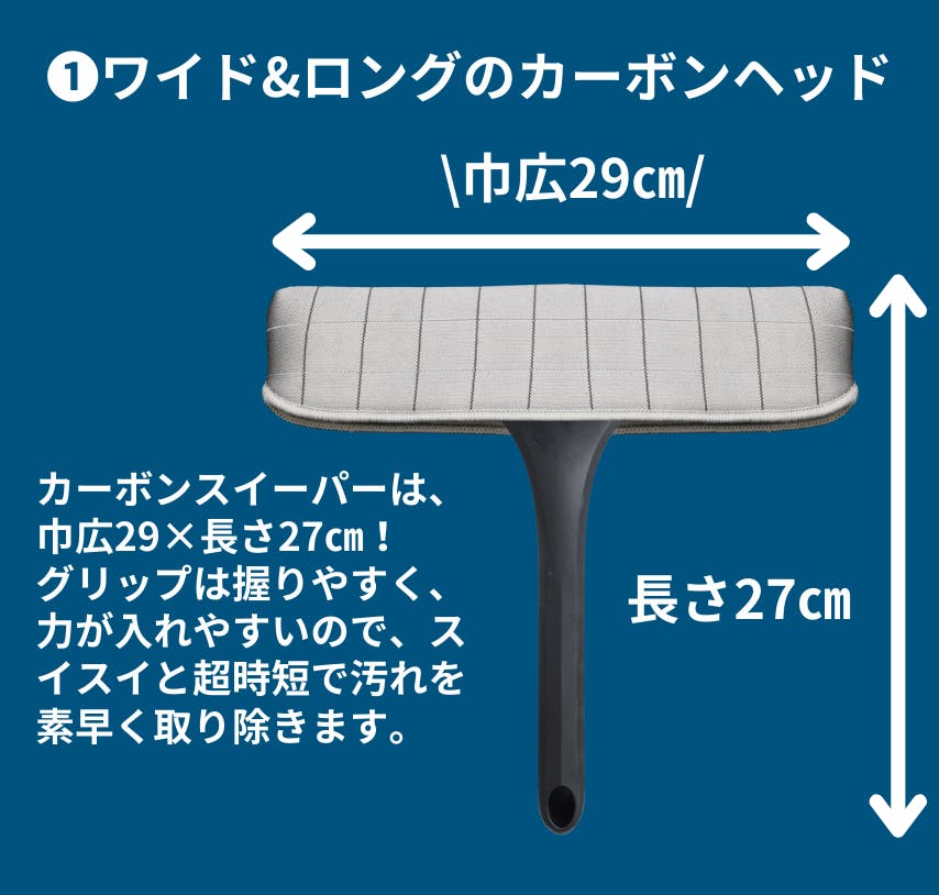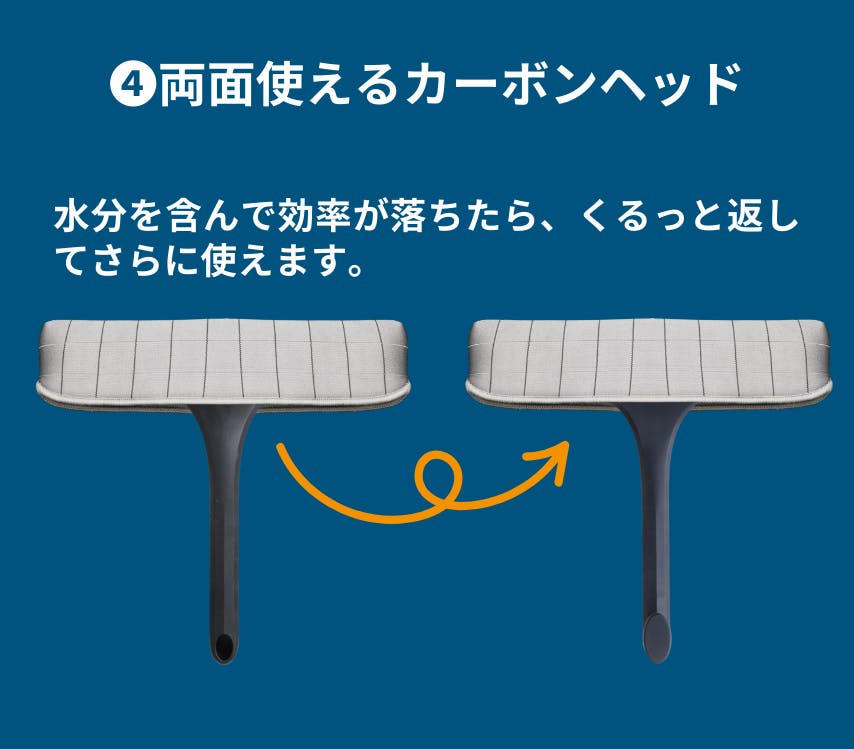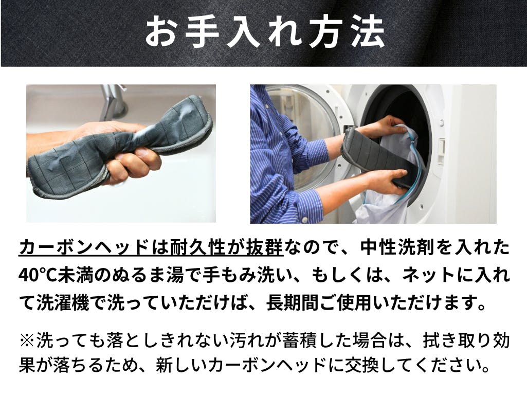 ※洗っても落としきれない汚れが蓄積した場合は、拭き取り効果が落ちるため、新しいカーボンヘッドに交換してください。